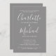 Featuring signature style names, this simple, elegant, modern engagement party invitation can be personalised with your special event details in chic white lettering on a grey background. Designed by Thisisnotme©