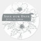 Simple Grey White Anemone Art Floral Save our Date Classic Round Sticker