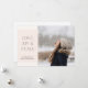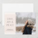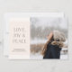 Minimalist design featuring delicate font and one image layout. "love, peace joy" greeting.