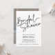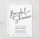 Minimalist PHOTO bridal shower invitations featuring "Bridal Shower" at the top left, presented in a black calligraphy script against a classic white background with space, on the reverse side, for a portrait or vertical photo. Customise the chic bridal shower invitations with the name of the bride-to-be and shower party details below. The contemporary bridal shower background can be changed in any colour!. Vertical version