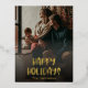 This simple happy holidays full vertical photo gold foil holiday postcard is perfect for your modern luxury Christmas greeting. The casual yet classic festive font is made with premium gold pressed real foil, allowing for a shiny minimalist rustic look. The Lettering goes well with dark boho winter photos, and the basic minimal layout gives an excellent opportunity to let your family sparkle!