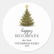 Simple Happy Holidays Green Christmas Pine Tree Classic Round Sticker