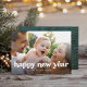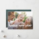 This is a minimal New Years card featuring a beautiful simple photo combined with “Happy New Year” in a trendy bold and retro-inspired modern font. The back of the card uses an elegant green and gold pattern.