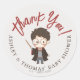 Add a personalised, magical touch to your party favours with this enchanting Harry Potter baby shower thank you sticker! This round sticker features an adorable chibi wizard with a wand and is perfect for sealing gift bags or adding a special touch to party favours. You can customise it with the names of the parents-to-be, making it a perfect and personalised detail for your celebration.
