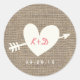 Simple Heart & Arrow Rustic Burlap Wedding Favour Classic Round Sticker