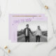 Modern and stylish save the date card featuring a modern typography text that says "save the date." One photo in the font and one on the back. The background is lilac.