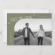 Modern and stylish save the date card featuring a modern typography text that says "save the date." One photo in the font and one on the back. The background is sage green.