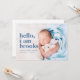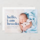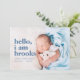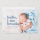 If you love simple style, this birth announcement card is right for you. The card features an elegant design that allows you space to highlight your precious little one. On the left, the large block text highlights the name beautifully scripted to match your photo. Announce the birth of your sweet baby with this soft and timeless piece.