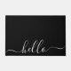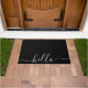 Elegant custom doormat features a simple "hello" in an elegant stylish white script typography on classic black background to provide a warm welcome to your guests. Easy to customise. Enjoy!