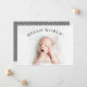 A simple modern birth announcement where a full bleed photo of your little one takes centre stage. The design features a curved header greeting in grey that reads "Hello World!" - this can be amended. The name and birth details of your new addition are at the bottom. The reverse of the card features a preppy grey and white polka dot pattern.
