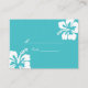 Simple Hibiscus Flowers Turquoise Wedding Place Card.