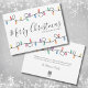 A festive, fun, and simple Christmas card featuring strings of colourful Christmas lights on the front and back. The front displays "Merry Christmas" in script typography, along with your family name or business name in a simple font. You can also choose to change the background colour to better fit your holiday theme. This design is perfect for spreading holiday cheer with its vibrant and joyful aesthetic, and yet it is also fairly minimalistic. On back, you can add a personal note or leave it blank for a handwritten message. The main message can be customised to "Happy Holidays" or "Season's Greetings" if you prefer. This card is ideal for sending warm wishes to loved ones or for use by businesses, capturing the spirit of the season in a lively and colourful way. The fonts and lines are a dark grey colour, not stark black. Cute Colourful Festive Holiday Lights Merry Christmas Card. Available as a printed card, or as a downloadable digital card that you can send in e-mail or have printed locally!