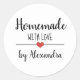 Simple "homemade with love" sticker with a black font on a white background embellished by a cute red heart. Customise text.