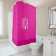 Simple Hot Pink and White Three Letter Monogram Shower Curtain