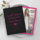 Simple Hot Pink Black Photo Sweet 16 Sixteen Invitation