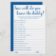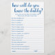 "How Well Do You Know Daddy?" Who best knows the father-to-be? Simple keepsake baby shower or gender reveal party game featuring a fun, casual hand-lettered script. The classic design includes a modern handlettered quote typography overlay. For other colours or matching products, please visit the JustFharryn Zazzle store, or contact the designer, c/o Fharryn@yahoo.com All rights reserved. #bohochic #zazzlemade"