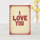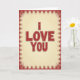 This card features the words “I LOVE YOU” in large, red letters centered on the front, set on two lines. The lettering has a worn, speckled look with tiny white flecks, like an older printed sign. Around the message is a repeating deep-red border filled with small connected shapes and little dots that feel like a folk-style pattern. The background is a soft creamy yellow that fades slightly toward the edges, with a few faint splatters that add to the aged feel. It’s a simple message, but the older look makes it feel like something you’ve held onto for a long time. Giving it can feel like saying “I mean this,” whether it’s for a partner or someone you care about deeply 🥰. Share it to pass along a little love and closeness on Valentine’s Day ❤️.