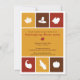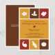 Give thanks and send this contemporary invitation for a fun Thanksgiving dinner party. This invitation uses the icons of Thanksgiving to convey warm wishes. The gold, red and brown colours surround icons of a turkey, horn of plenty, and ear of corn, among others to frame your customised text. Add any extra text on the reverse. Available matching products.