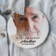 Pay tribute to a loved one who has passed away with this modern pin-on button, featuring a photo with "in loving memory" and your loved one's name in modern fonts. If you need any help customizing this, please message me using the button below and I'll be happy to help.