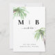 Simple Tropical Palm Trees. Black Initials. Save the Date. Wedding. Swash. Announcement. Vertical.