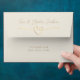 Add a touch of refined elegance to your wedding suite with this minimalist ivory 5x7 envelope. Featuring a personalised return address, modern calligraphy script, and a romantic gold rope heart, this envelope perfectly complements classic, neutral, or contemporary wedding themes. A timeless and sophisticated choice that enhances the presentation of your wedding invitations.