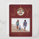 Celebrate the simple joys of the holidays and share two of your favourite photos with an elegant burgundy and gold foil Christmas card. Text on this template is easy to customise to include any wording, such as Merry Christmas, Happy Holidays, Seasons Greetings, Cheers to the New Year etc. (IMAGE PLACEMENT TIP: One way to centre a photo exactly how you want is to crop it before uploading to the Zazzle website.) Front side of card is printed with real metallic gold foil on a dark red ombre background. Design also features a modern minimalist JOY ornament, stylish script typography, and 2 pictures of your choice. Family and friends will love displaying this elegant personalised card.