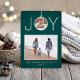 Celebrate the simple joys of the holidays and share two of your favourite photos with an elegant teal and rose gold foil Christmas card. Text on this template is easy to customise to include any wording, such as Merry Christmas, Happy Holidays, Seasons Greetings, Cheers to the New Year etc. (IMAGE PLACEMENT TIP: One way to centre a photo exactly how you want is to crop it before uploading to the Zazzle website.) Front side of card is printed with real metallic rose gold foil on a dark blue-green ombre background. Design also features a modern minimalist JOY ornament, stylish script typography, and 2 pictures of your choice. Family and friends will love displaying this elegant personalised card.