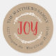 Affordable custom printed round return address stickers personalised with your family name and return address. This rustic modern holiday design features red JOY lettering and branches on a faux kraft paper background. Use the design tools to change the background colour and fonts to further customise your own unique Christmas return address labels.