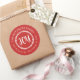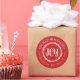 Affordable custom printed round return address stickers personalised with your family name and return address. This rustic modern holiday design features simple JOY lettering and branches on a red background. Use the design tools to change the background colour and fonts to further customise your own unique Christmas return address labels.