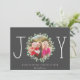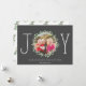 This simple, modern holiday photo card features the word 'JOY' with a colourful wreath of greenery and red berries. Include your own family photo in the centre of the wreath. Background colour is a rich charcoal grey. Some components of the design were provided by Freepik. Visit our store to see our complete collection of holiday cards and matching accessories.