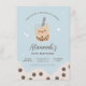 Simple Kawaii Boba Bubble Milk Tea Blue Birthday Invitation