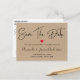 Elegant simple black and white vow renewal save the date postcard. Design features of ''save the date'' in modern calligraphy script in deep black colour on Kraft texture. Please note no real Kraft will be used, this is printed digital illustration. Add your message and more details on the back.