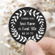 Add a personalised finishing touch to party favours and thank you notes with custom laurel wreath round stickers. All wording on this template is simple to customise for any occasion, such as wedding, bridal shower, graduation, birthday party, anniversary or retirement. Change or delete any of the text to make envelope seals for invitations, announcements or save the dates. The modern black and white botanical design features a white laurel wreath, rustic script calligraphy and stylish classic typography. These elegant round labels add a unique customised touch to a special day celebration.