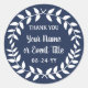 Simple Laurel Wreath Navy Blue and White Thank You Classic Round Sticker