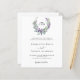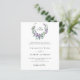 White background. A floral wreath made of lavender flowers and watercolored eucalyptus greenery. Personalise and add your monogram initials, names, and details. Black text.