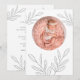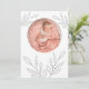 Simple Leaf Photo Baby Girl Birth Announcement. Avalable digitally and printed. Can also be used as a background for the vellum overlays available in this collection. A simple contemporary design to announce the arrival of your baby girl. Simply replace the sample photo with your own of your new arrival which is within a circular mask shape and easily personalise the text on the back. With simplistic line drawing leaves.