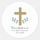 Simple Leaves and Cross First Holy Communion Classic Round Sticker