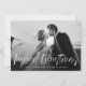 black and white design with a photo of the bride and groom and elegant lettering. The text and colours can be personalised.
