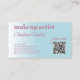 Beautiful elegant minimalist style artistic makeup artist business card. Contemporary light ocean blue coloured business card with a modern retro and minimalist cotton candy pink and sophisticated classy white font. Click on 'Personalise' to find the template ready to be customised with your unique business name, profession and contact information, text and QR code of your choice. This particular pretty and unique design was made for those who like sophisticated classic strong designs.