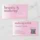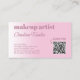 Beautiful elegant minimalist style artistic makeup artist business card. Contemporary light cotton candy pink coloured business card with a modern retro and minimalist dark mauve taupe and sophisticated classy white font. Click on 'Personalise' to find the template ready to be customised with your unique business name, profession and contact information, text and QR code of your choice. This particular pretty and unique design was made for those who like sophisticated classic strong designs.