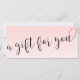 Elegant minimalist makeup gift certificate design which features your name and makeup text in a modern handwritten script lettering, gradient light pink background.