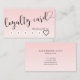 Elegant minimalist makeup loyalty card design which features your name and makeup text in a modern handwritten script lettering, gradient light pink background.
