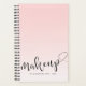 Elegant minimalist makeup planner design which features your name, year and makeup text in a modern handwritten script lettering, gradient light pink background.