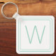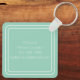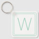 This simple and modern monogrammed keychain has a minimal monogram that you can personalise with your choice of initial on the front and contact information on the back in soft light teal and white.