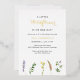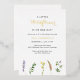 Boho Baby Shower Invitation with watercolor painted wildflowers in a simple layout at the bottom. The event title is "A little wildflower is on her way" with the word "wildflower" and the name of the Mum-to-Be in real gold foil. This botanical floral Invitation is great for a rustic style spring or summer girl baby shower.