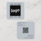 Simple minimalist logo and custom text with QR code for your business. Replace the logo, QR code and text with your own to customise, and change the background and text colour to match your own branding.