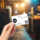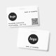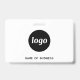 Simple logo with custom text and QR code professional business name badge. Change the logo, QR code website destination and any of the text to customise. The back features your logo and company name.