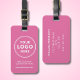 Simple business logo pink luggage tag; add your own logo and custom text to the front, and name and address details to reverse. Perfect for a professional small business. Please use the message me button below for help with further customisation and special requests. © Zoe Chapman Design