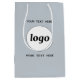 Add your own logo branding and choice of text to this design. Remove the top or lower text if you prefer. Minimalist and professional to promote brand loyalty. Great as a gift bag, product packaging, trade show giveaways, or for your store front customer product purchases.