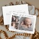 A sweet 3 photo collage birth announcement and thank you note card featuring a simple modern type and 3 pictures on the front. The back is a mailable postcard with a large full name header and personal message from the family. Click the edit button to customise this design with your photos and details.